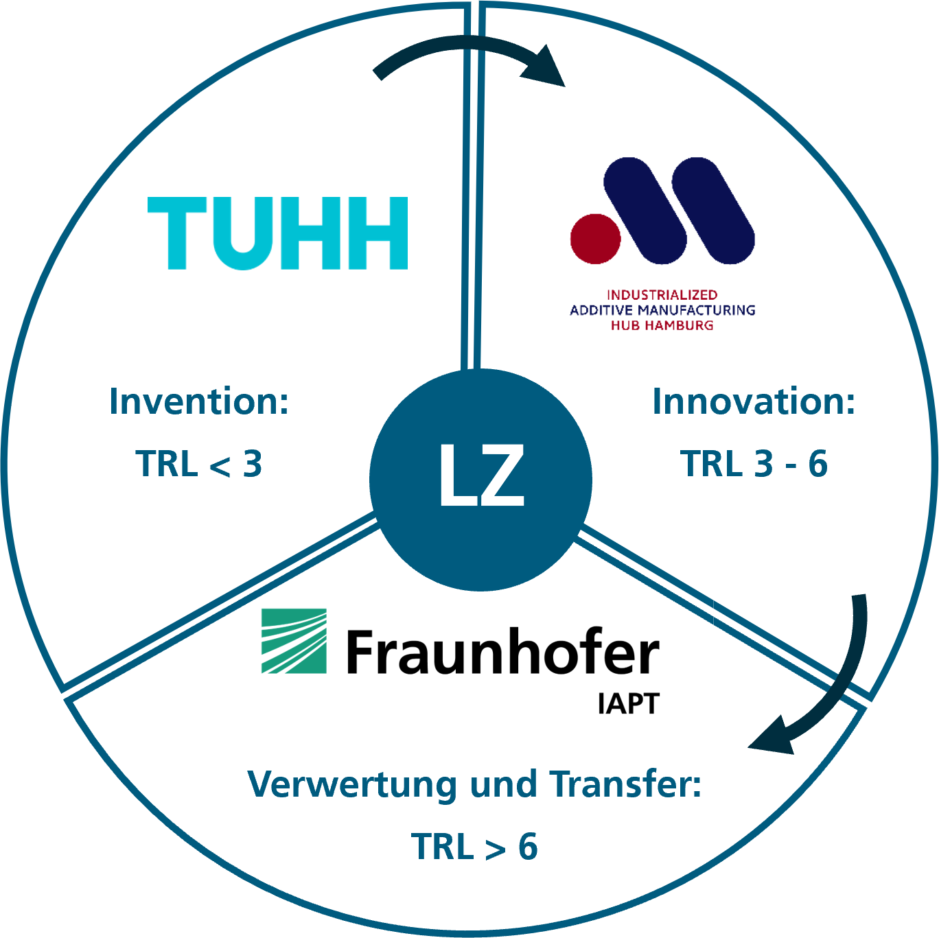 Das Leistungszentrum besteht aus drei Kernpartnern, die eng miteinander verzahnt sind: Die TUHH, der neu gegründete Verein IAMHH e.V. und das Fraunhofer IAPT.